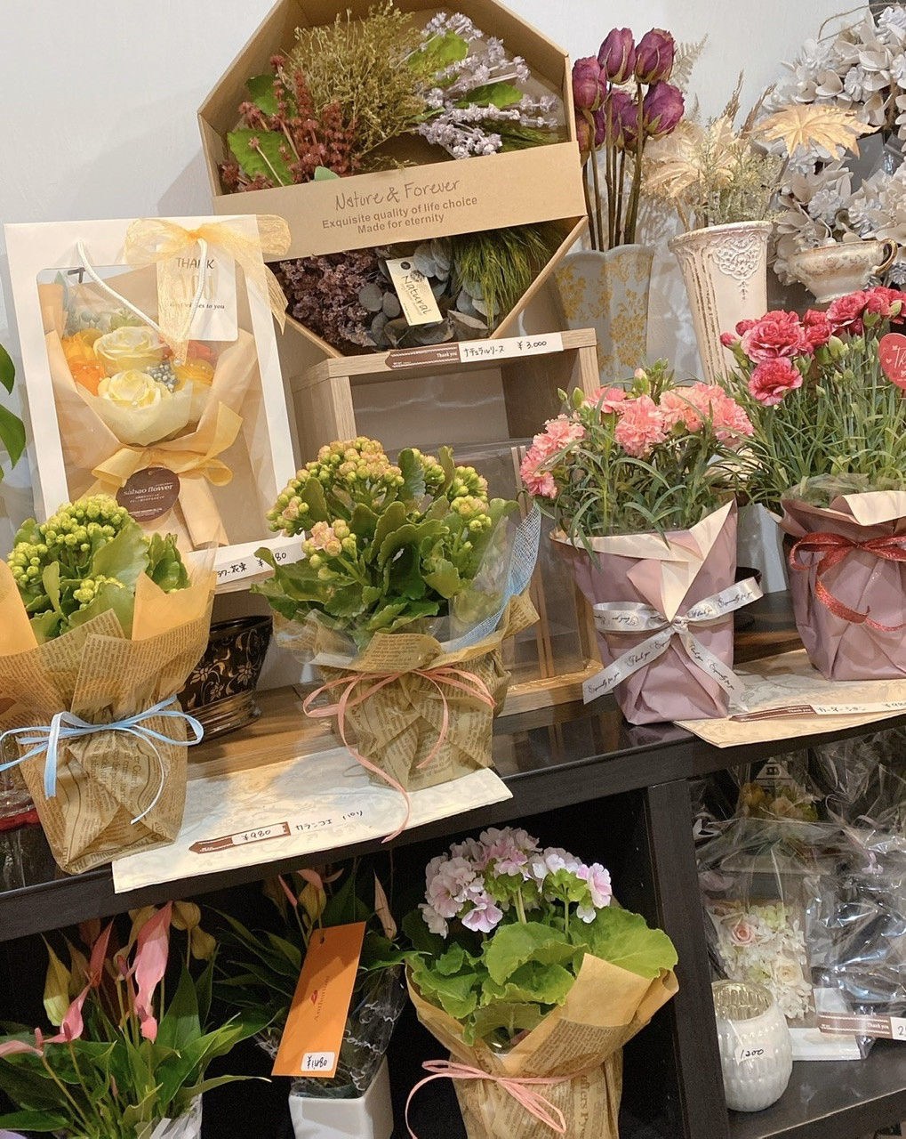 母の日 模様替え 2020/05/02 Mothers DAY マザーズデイ ディスプレイ 母の日 ゴールデンウィークになって 店内を母の日に模様替えしました? 定番のカーネーション、 たくさんのアジサイ?から カラー、カランコエ取り揃えて おります✨ アレンジ、花束もしております。 是非、ご来店下さい。 母の日