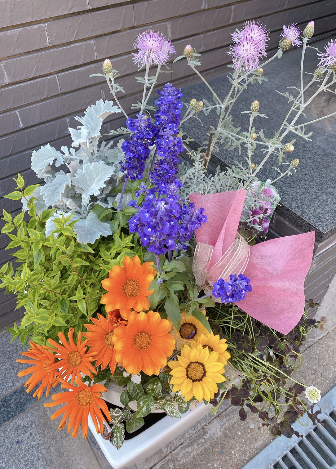 鉢 植え替え 2020/05/19 寄せ植え 宅配 ご自宅の鉢 寄せ植え ご自宅の鉢花の植え替えの ご注文を頂きました。 持っている鉢、陶器の器を 使って寄せ植えて欲しいと ご依頼を頂きました? 南向きで、暑さに強いお花で作らせて 頂きました? 陶器の鉢、その他に木の樽など 寄せ植えをさせて頂く際に、 こちらの方も、リメイクさせて 頂きました✨ 完成品を配達させて頂き、 玄関が明るくなったと喜んで 頂き良かったです? 当店、出張での仕事もして おりますので、是非お気軽にご相談 下さいね? 夏色 南向きに強い花