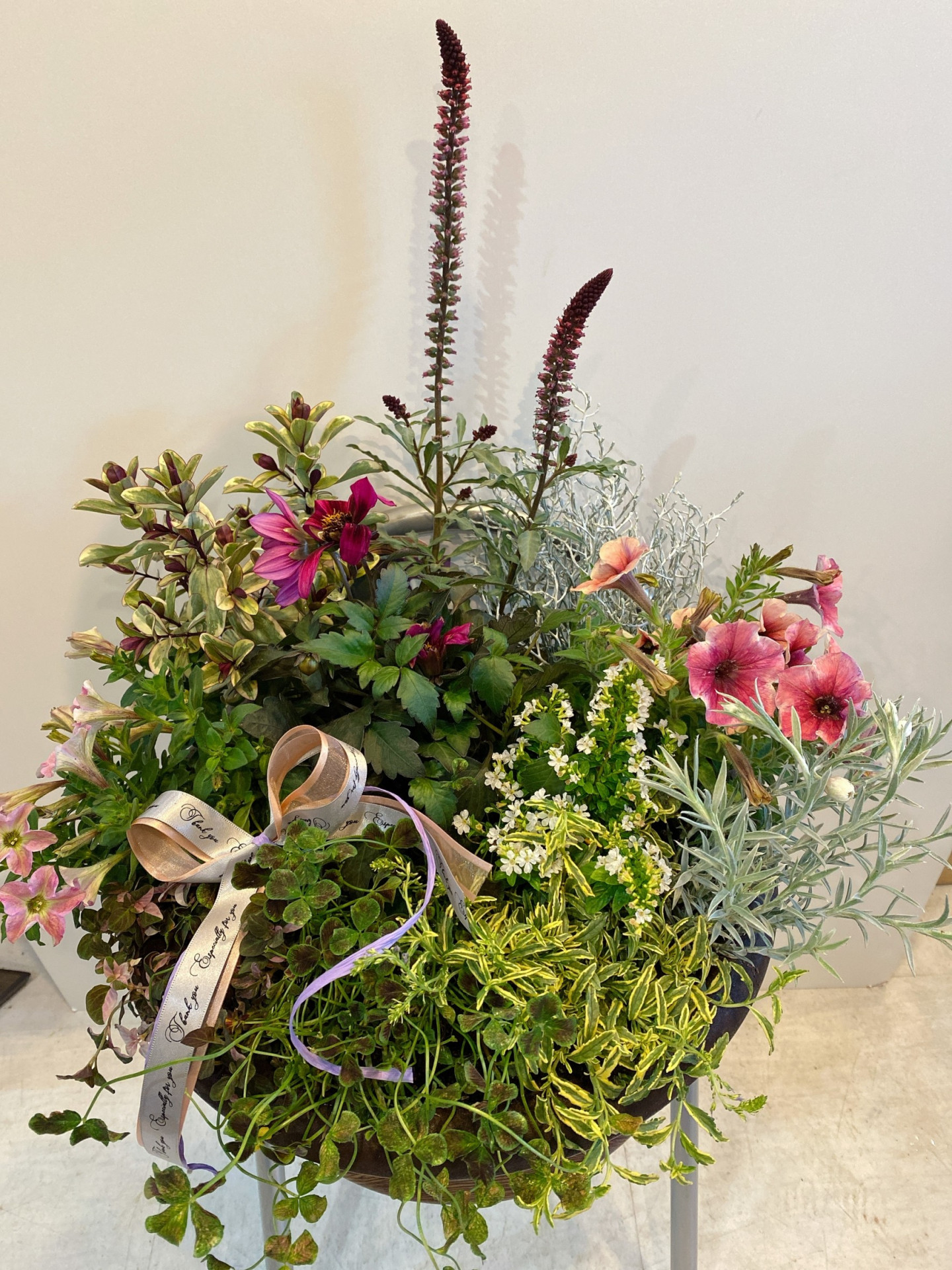 配達 花 2020/06/08 大人な感じ 寄せ植え 大人っぽい 寄せ植え 上品 大人らしい落ち着いた感じの 寄せ植えを作らせて頂きました? ダーク系のカラーを使うことで より一層に大人らしい感じが 出て綺麗です? リボンもゴールドを使う事で お花を引き立てます✨ 配達させて頂き喜んで頂き 大変嬉しく思います。 当店は、お客様のご要望を お聞きしてオーダーでの 制作も承っておりますので 是非どうぞ?
