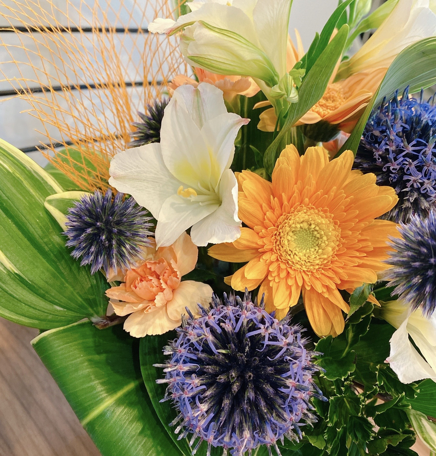 アレンジ 2020/06/11 アレンジ ルリ玉 アレンジ 涼しげ アレンジのご注文を頂きました? 涼しい感じでとご注文を頂きましたので ルリ玉に、夏らしいカラーにと オレンジを少し入れさせて頂き ナルコユリの葉を使い 仕上げさせて頂きました? 涼しい感じに仕上げるために 少し白みを取り入れて 作らせて頂きました? 大変、喜んで頂き良かったです✨